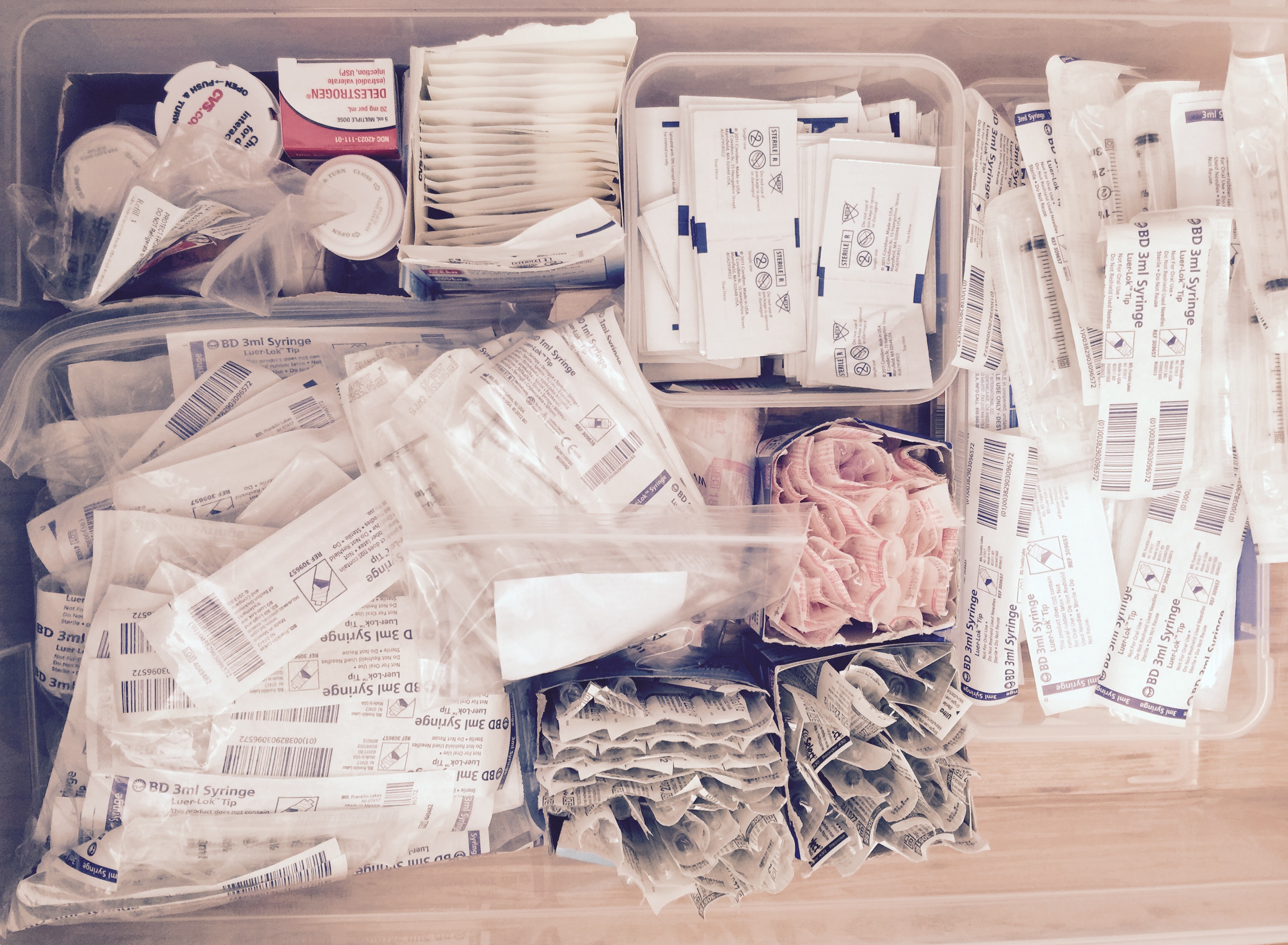 For most of my cycles we have done a “controlled” cycle. This means that my cycle leading up to the embryo transfer is controlled by hormone injections (estrogen and progesterone). In the past I was able to try a natural cycle, which relied on my body’s own ability to manage my menstrual cycle and thickening of the uterine lining where there was minimal medication use. That worked one time, then the next try, my ovaries weren’t cooperating and we had to start over. In my controlled cycle, I start with a baseline ultrasound on day 2 or 3 of menstruation to check that the uterine lining is thinning and that there are no cysts developing on my ovaries. From there I start on Delestrogen intramuscular injections twice a week for a little less than two weeks. This also involves blood draws to check my estrogen levels and any necessary dosage adjustments. Another ultrasound is performed to check that the lining is thickening appropriately and to check that my ovaries are “quiet” and no cysts are developing. Then the progesterone injections start. My husband has become a pro at giving me injections. We went through IVF twice and have now made it through eight embryo transfers, plus a couple cancelled cycles. So, he’s really got this down.
